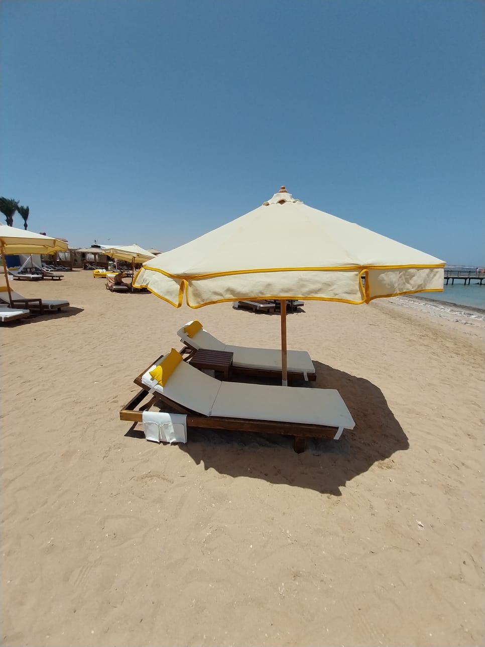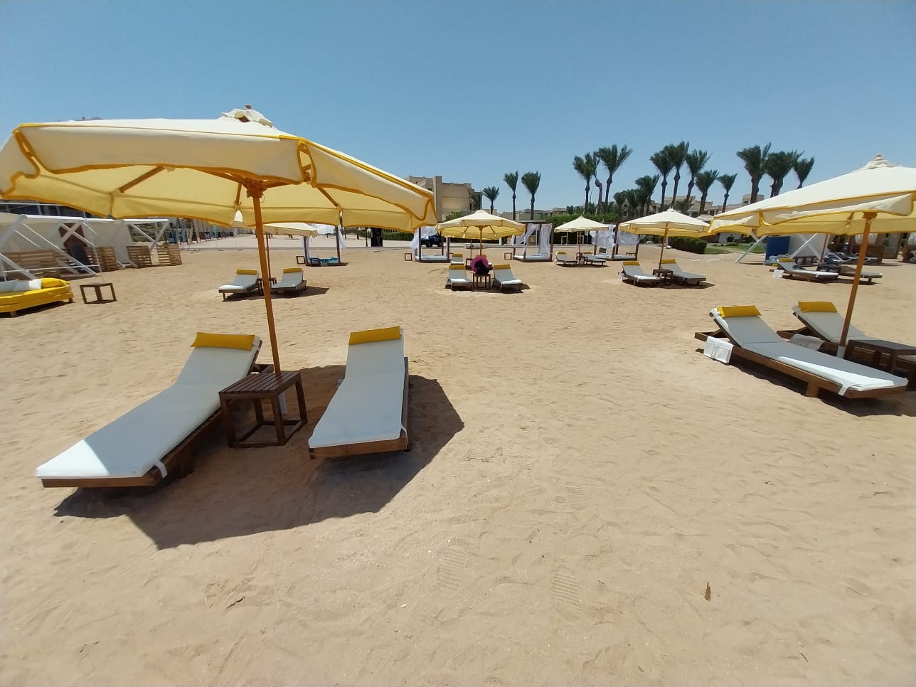 شاطئ خاص واسع مزود بكافة الخدمات.