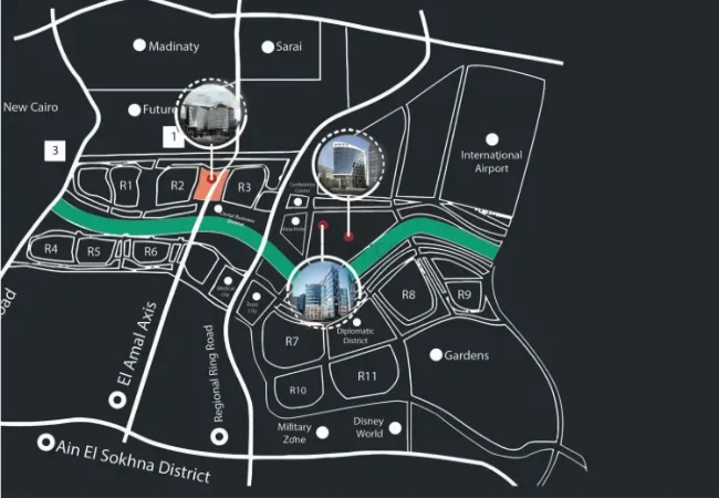 يتمتع مول إكس بيزنس كومبلكس العاصمة الإدارية الجديدة بموقع استراتيجي يضعه بالقرب من أهم معالم العاصمة وأكثرها حيوية، حيث: