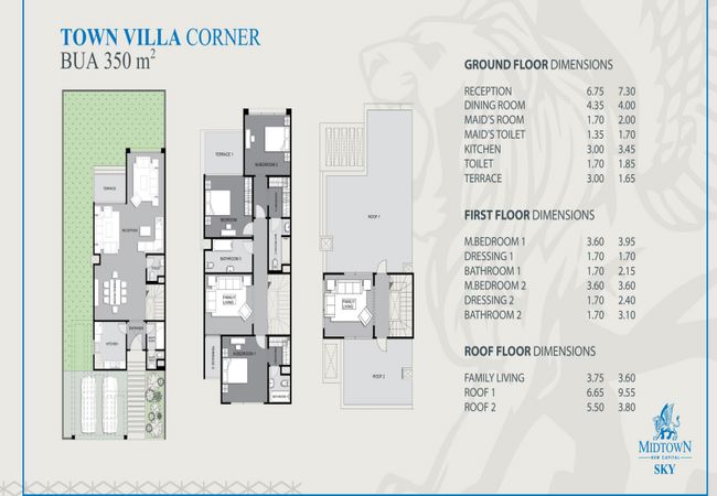 - تاون فيلا يبدأ من مساحة 350 متر مربع وأرض 200 متر مربع.