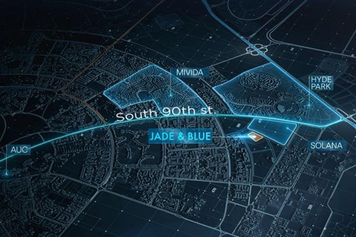 The Jade & Blue Compound enjoys an exceptional location, placing it at the heart of events and close to the most important landmarks and vital hubs in New Cairo: