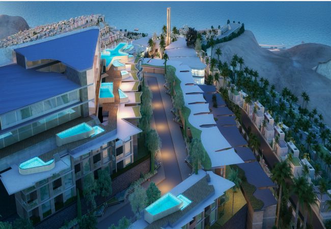 ISLA: Gradually located 104 meters above sea level, surrounded by crystal lagoons. It features chalets, townhouses, and villas with diverse sizes and views of the Red Sea beaches.