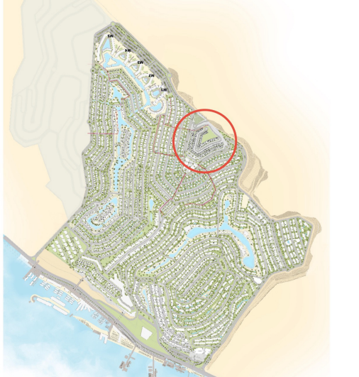 The compound extends over 520 acres, with a beachfront of 1,400 meters and a depth of 1,300 meters, allowing for the spread of green spaces and water features throughout the village. The project is divided into several phases that include various types and sizes of units to meet all customer needs.