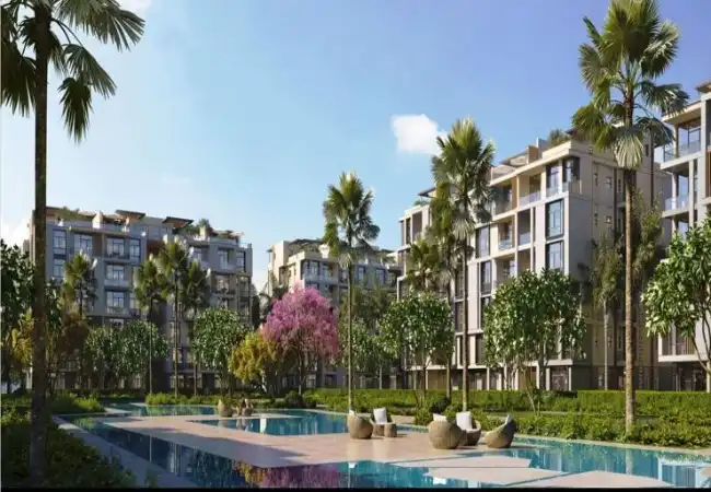 The buildings are strategically distributed to provide each unit with a distinctive view of the green spaces or swimming pools, creating a peaceful and ideal environment for living and relaxation.